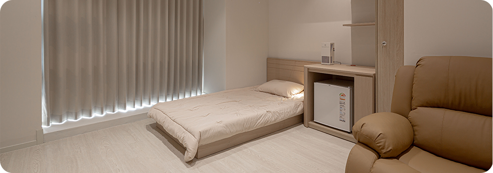 곡선의 구조로 모서리가 없어 안전한 입원병실